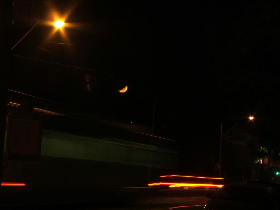 Moonrise, streetlight and car