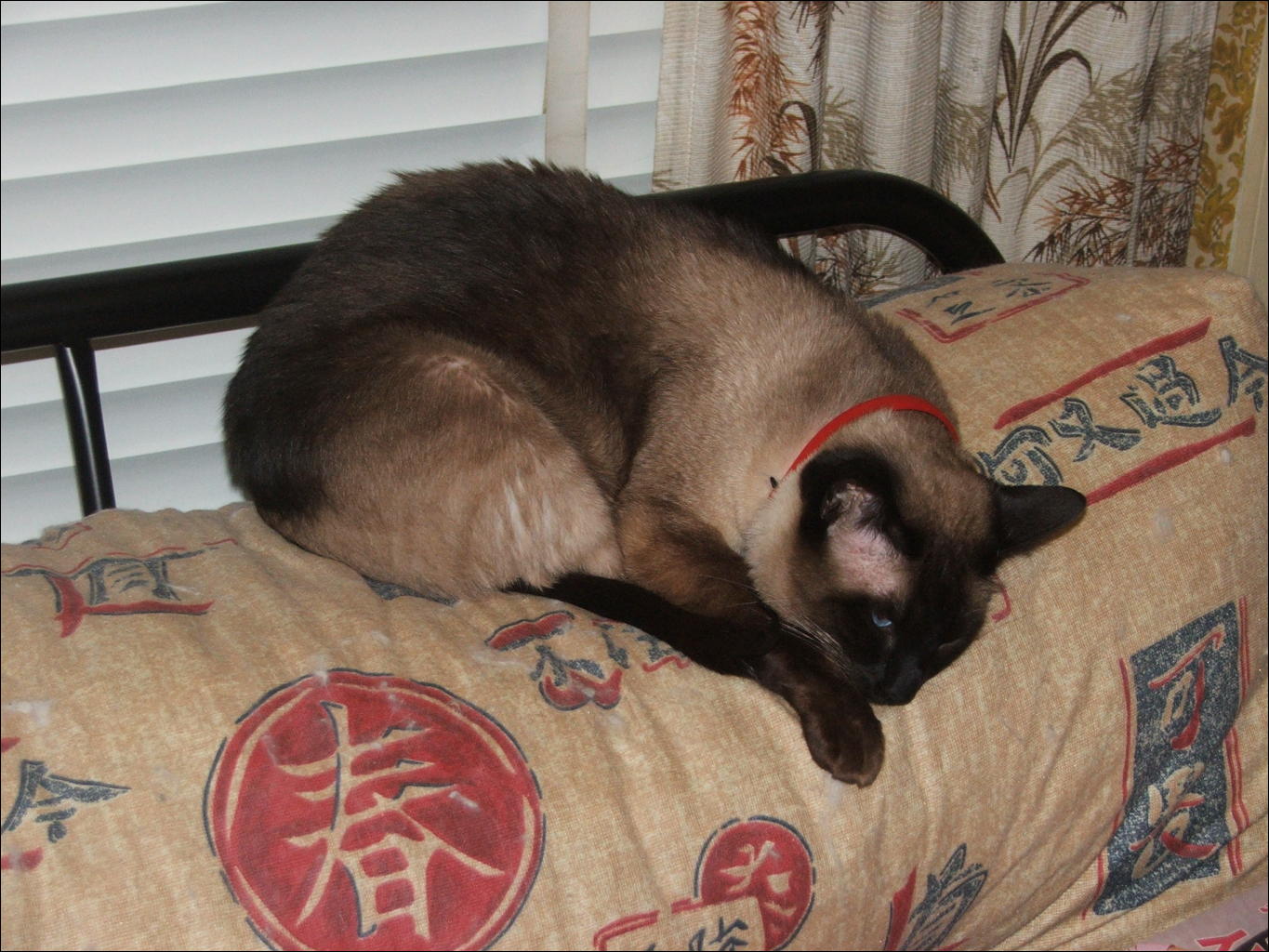 I thought Phred was being cute. I later discovered an enormous abscess on his head, from a fight, which was seriously hurting him