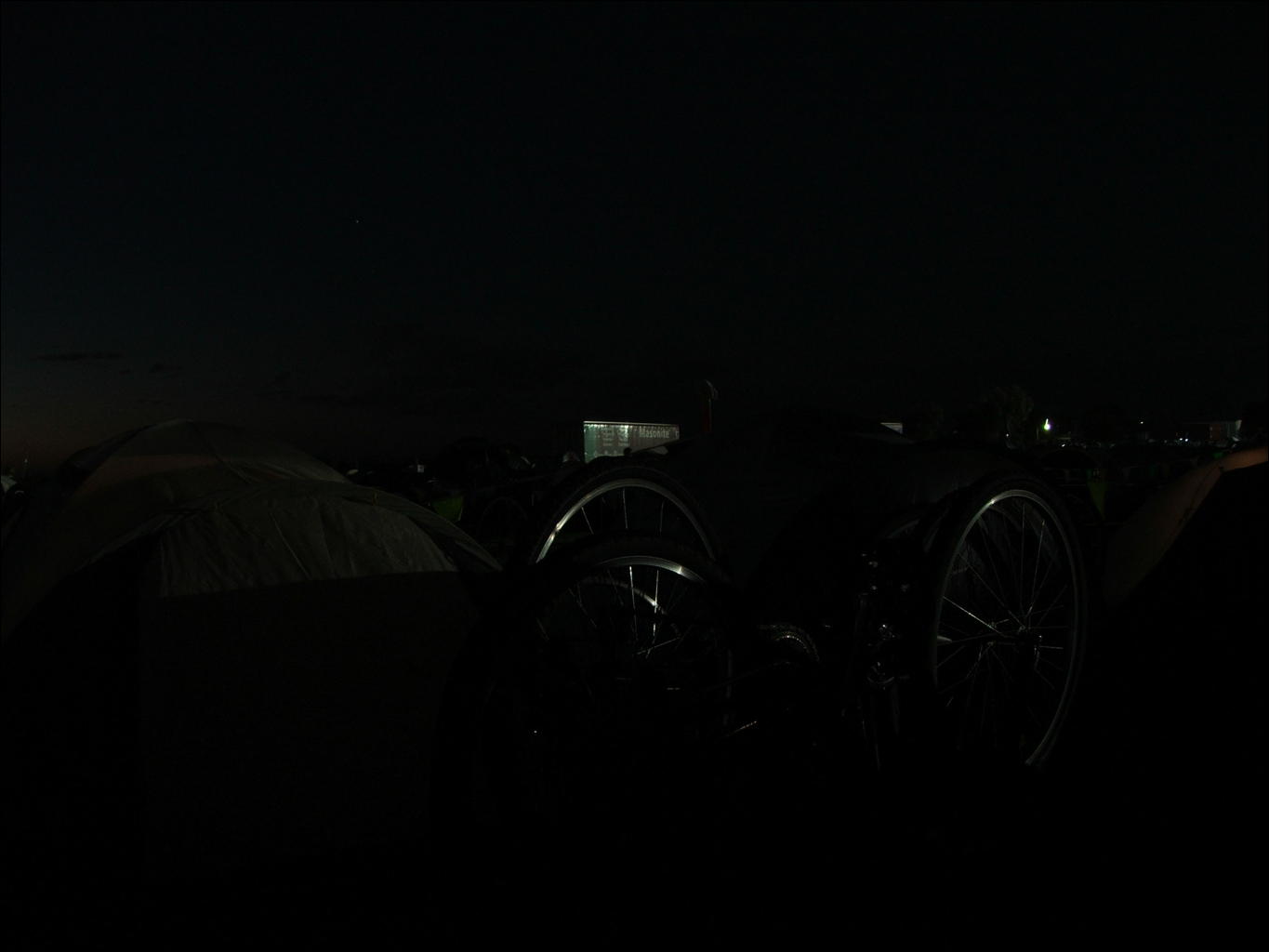 Non-colour enhanced photos of tents and bike at Koroit, first night