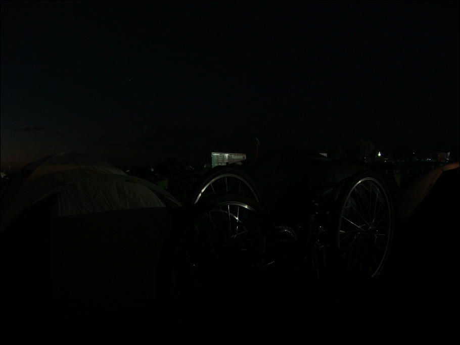 Non-colour enhanced photos of tents and bike at Koroit, first night